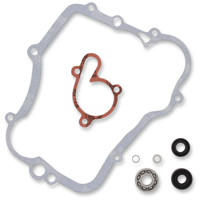 • Typical kits include the following: bearings where applicable; rubber seals; mechanical water pump seal where applicable; side cover gasket; water pump gasket; snap rings located on water pump shaft and copper drain washers
